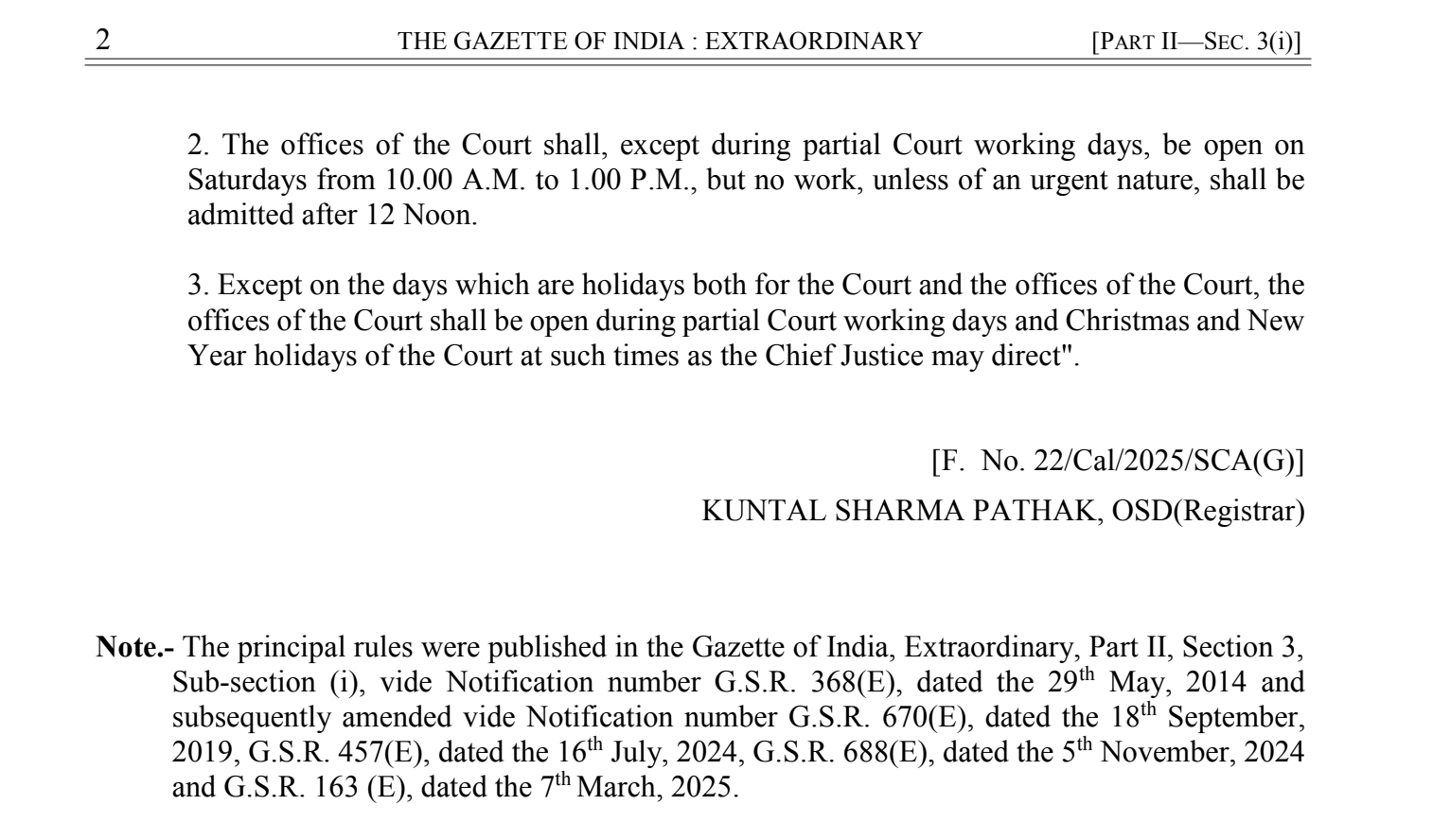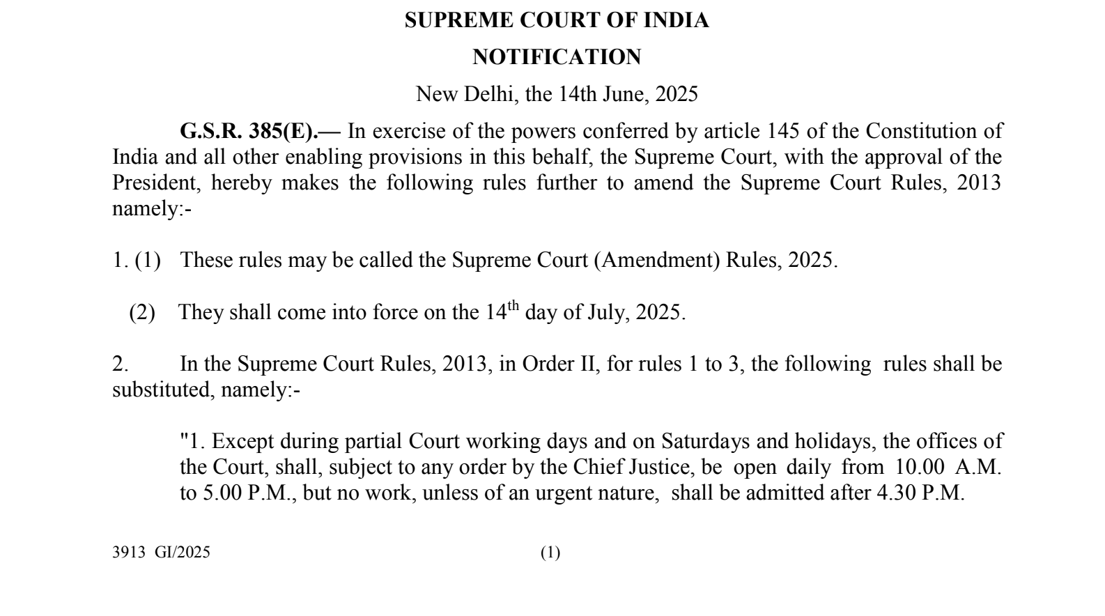 In a significant administrative move, the Supreme Court of India will reinstate the second and fourth Saturdays as working days, effective July 14, 2025. This change is part of the Supreme Court (Amendment) Rules, 2025, officially notified by the Ministry of Law and Justice and published in the Gazette of India.